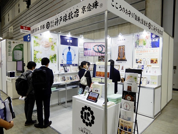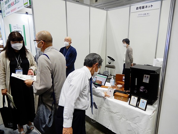 お墓関連の出展は、前回に続いて手元供養や樹木葬、散骨などが多く、残念ながら墓石そのものを前面に打ち出した出展は見られませんでした。手元供養のなかでは「自宅墓」の認知度が高まっていて、永代供養が付帯したサービスの普及とともに、仏壇型・卓上型・納骨箱型など商品の進化・細分化が進んでいました。また測量用ドローンを使った(有)小島石材店 3D測量事業部の「全国寺院霊園3Dシステム」は、墓地の測量業務の効率化に役立つ画期的な技術として注目を集めていました。