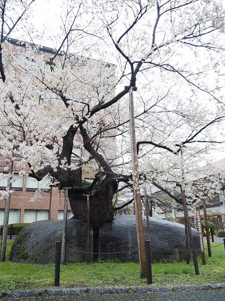ちなみに、石の割目から桜の木が育っていることで有名な「石割桜」の石も、三ツ石神社の三つの石と同じ岩質です(加藤碵一「みちのく石便り(その4)岩手の石と岩」)。三ツ石神社と石割桜のある盛岡地方裁判所は近いので、石割桜の石も三つの石と一緒に「神」としてまつるために運ばれてきたのかもしれませんね。