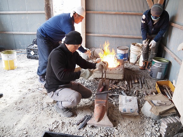 各自が持参した道具だけではなく丸棒が用意され、のみづくりから焼き入れまで行なうこともできた