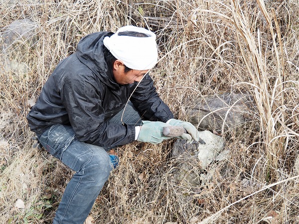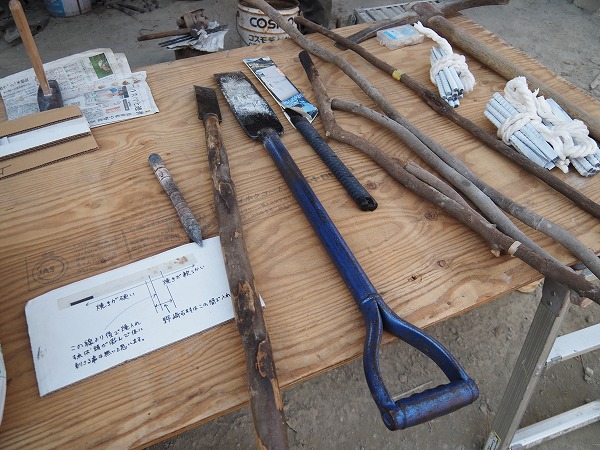 「道具づくりは父親に教わりました。新年は一週間ほどかけて、のみは毎年百本ほど焼いています。コヤスケは自分でつくり、買うことはないです。石屋たるもの、のみ焼きくらいできないとだめでしょう」と野崎さん。