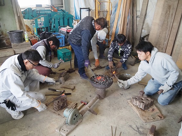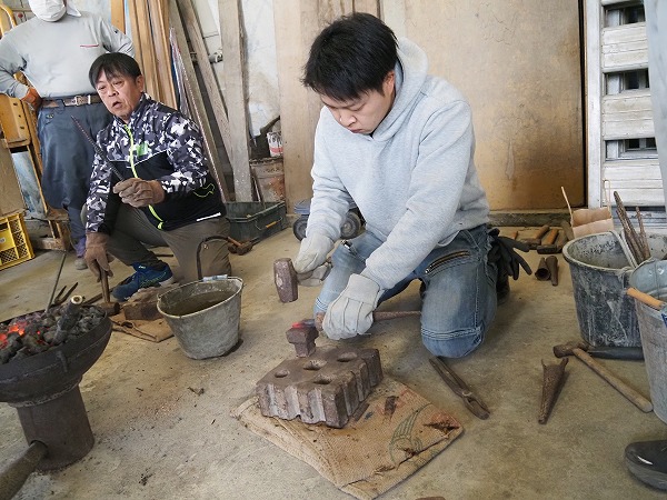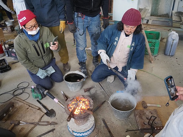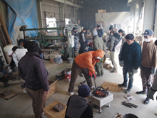 当日は山口氏の指導のもと、火熾しからスタートし、午前中は道具を焼き直し、午後は焼き入れを行なった。