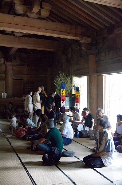 2013年8月15日午後、大山中腹にある天台宗別格本山・角磐山(かくばんざん)大山寺の阿弥陀堂(重要文化財)で、「施餓鬼会(せがきえ)」と「流れ潅頂(かんじょう)」が行なわれた。「施餓鬼会」は、餓鬼道で苦しむ一切の衆生(しゅじょう)に食物を施して供養する法会。
