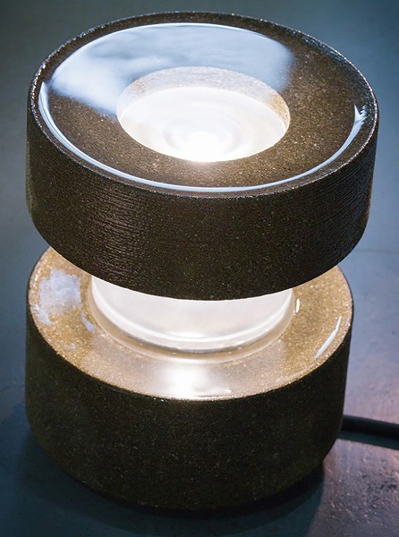 来待石産業振興プロジェクト実行委員会が2019年に工業デザイナーの松本正毅氏と共同開発した来待石製のオリジナル灯り「いしほたる」